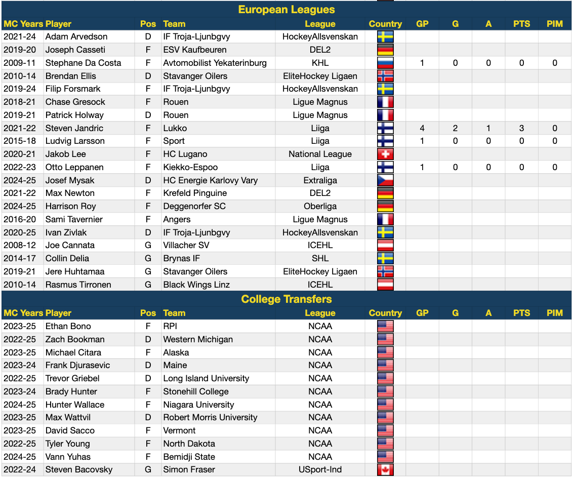 Our first Alumni Report of the new season is here, with 34 Merrimack men’s hockey alums under professional contracts for the coming year. The list is divided into four categories: NHL contracts, North American minor leagues, European leagues, and college transfers.