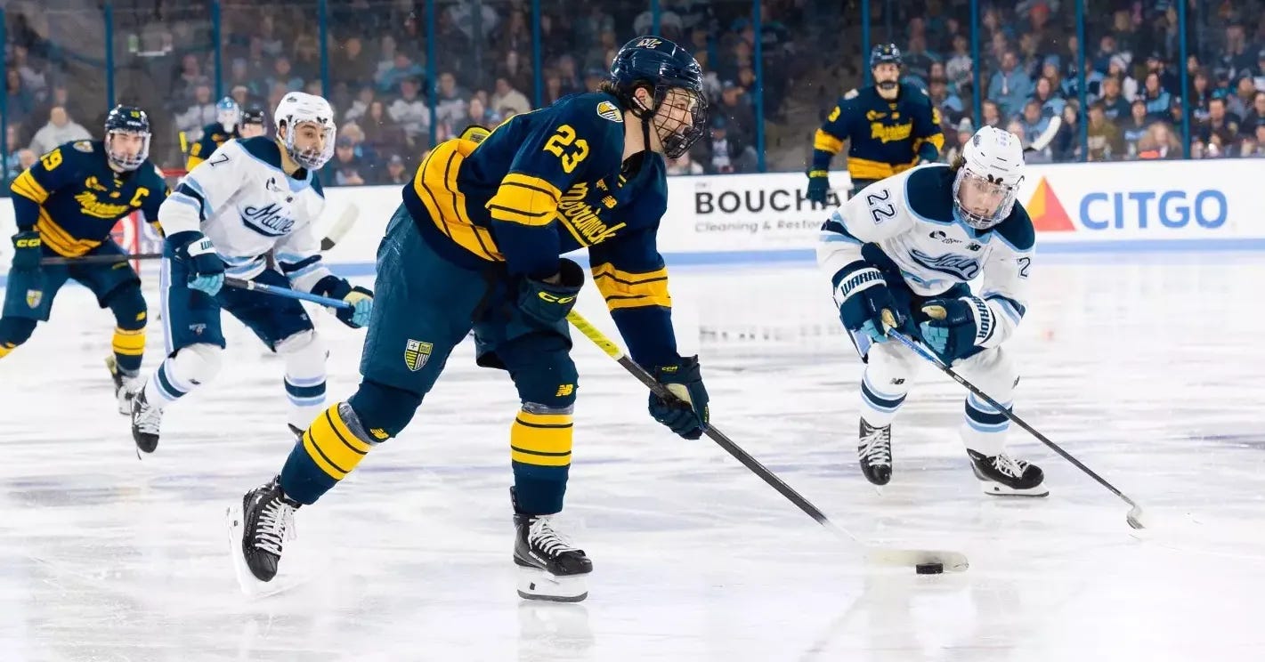 The Black Bears pushed the lead back to two at 3–1 in the second, but Caelan Fitzpatrick answered with a goal — much like Hillier’s earlier tally — to keep it a one-goal game entering the third. Justin Gill then tied it just 46 seconds into the final period.