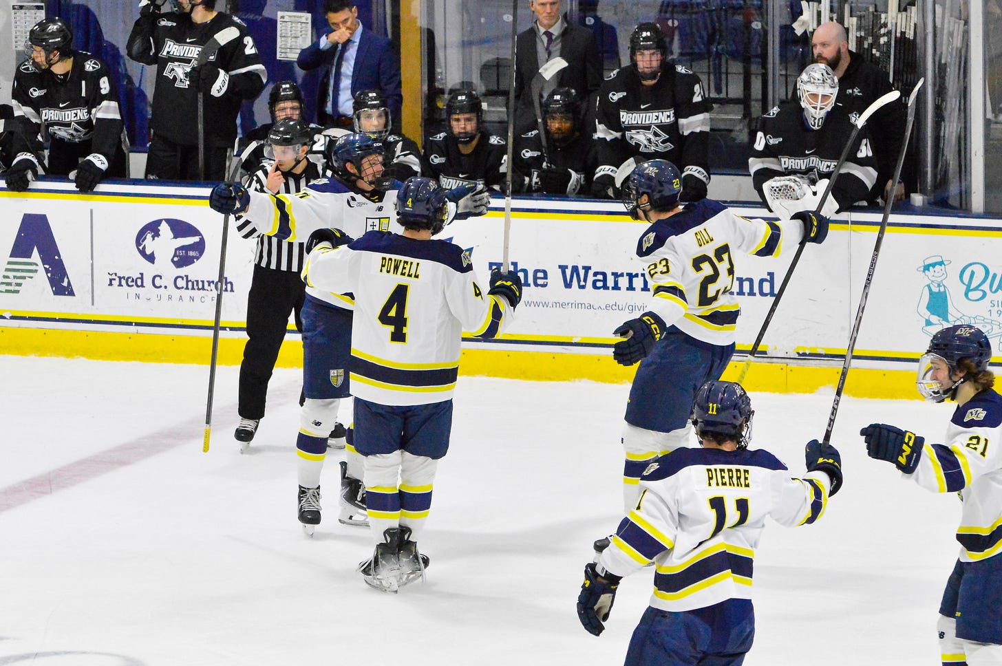 Hoskin scored his second of the night on a one-timer early in the middle frame, lifting Merrimack to a 3–2 victory and salvaging a weekend split with the Friars.