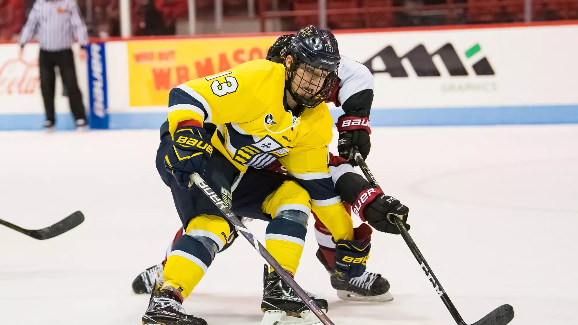 Collins led all players from this era with 53 goals and finished second behind Barton with 118 points (53 goals, 65 assists) in 138 career games. At the time, he was one of Merrimack’s biggest local recruits, having played high school hockey at Catholic Memorial.