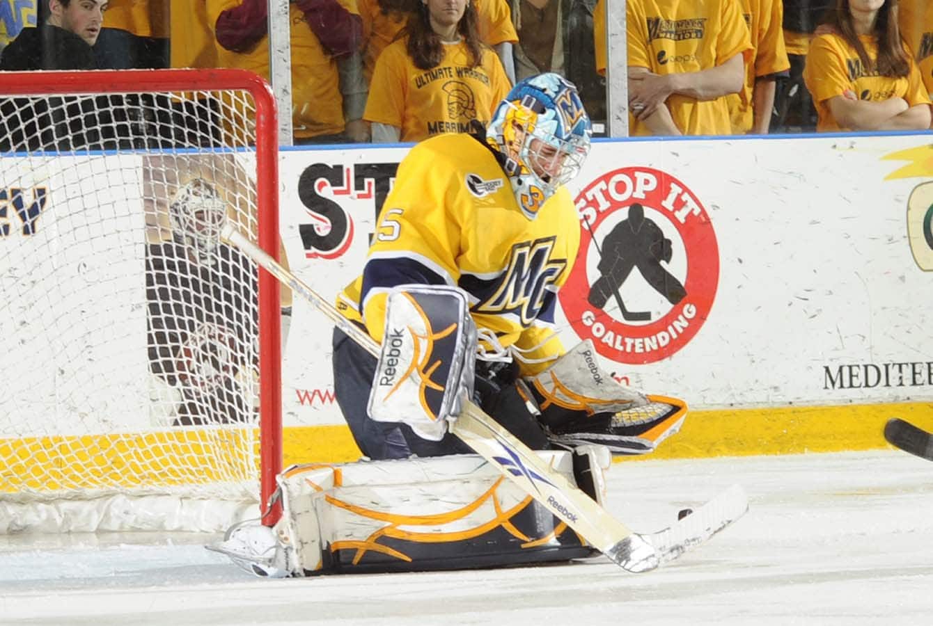 Cannata made more appearances than any goaltender in the past 25 years, skating in 122 games — well ahead of the next closest, Zachary Borgiel (71). He posted a .915 save percentage and remains the only goaltender in Merrimack’s Hockey East era with more wins than losses (59–46–16). Cannata backstopped the Warriors to the NCAA Tournament in 2011 and nearly carried them back again in 2012.