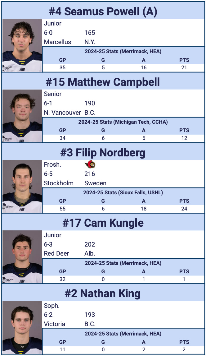 Earlier this week, we broke down Merrimack’s goaltenders. Today, we’ll shift focus to the defensemen.