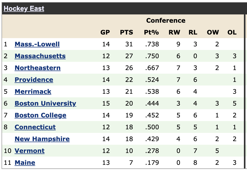 The Merrimack men’s hockey team defeated UMass Lowell, 3-1, on Friday night at Lawler Arena. The win moved the Warriors up to No. 18 in the Pairwise. UMass Lowell entered the night ranked No. 9 in the Pairwise but fell to No. 13 with the loss.