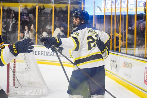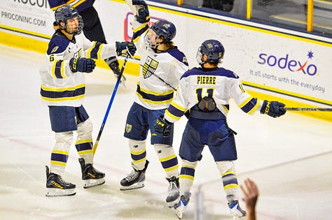 NORTH ANDOVER — Merrimack beat Quinnipiac 4-1 on Friday night at Lawler Arena behind goals from Nick Pierre (2), Trevor Hoskin, and Michael Emerson.