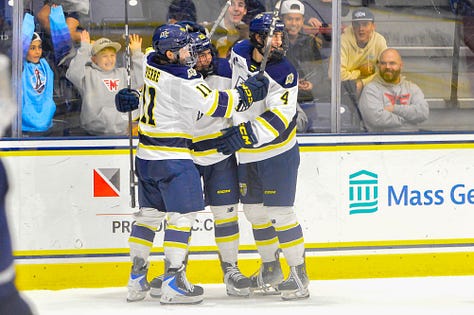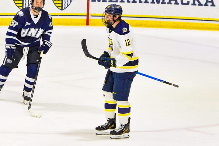 NORTH ANDOVER — Merrimack defeated New Hampshire 5-1 on Saturday night at Lawler Arena.