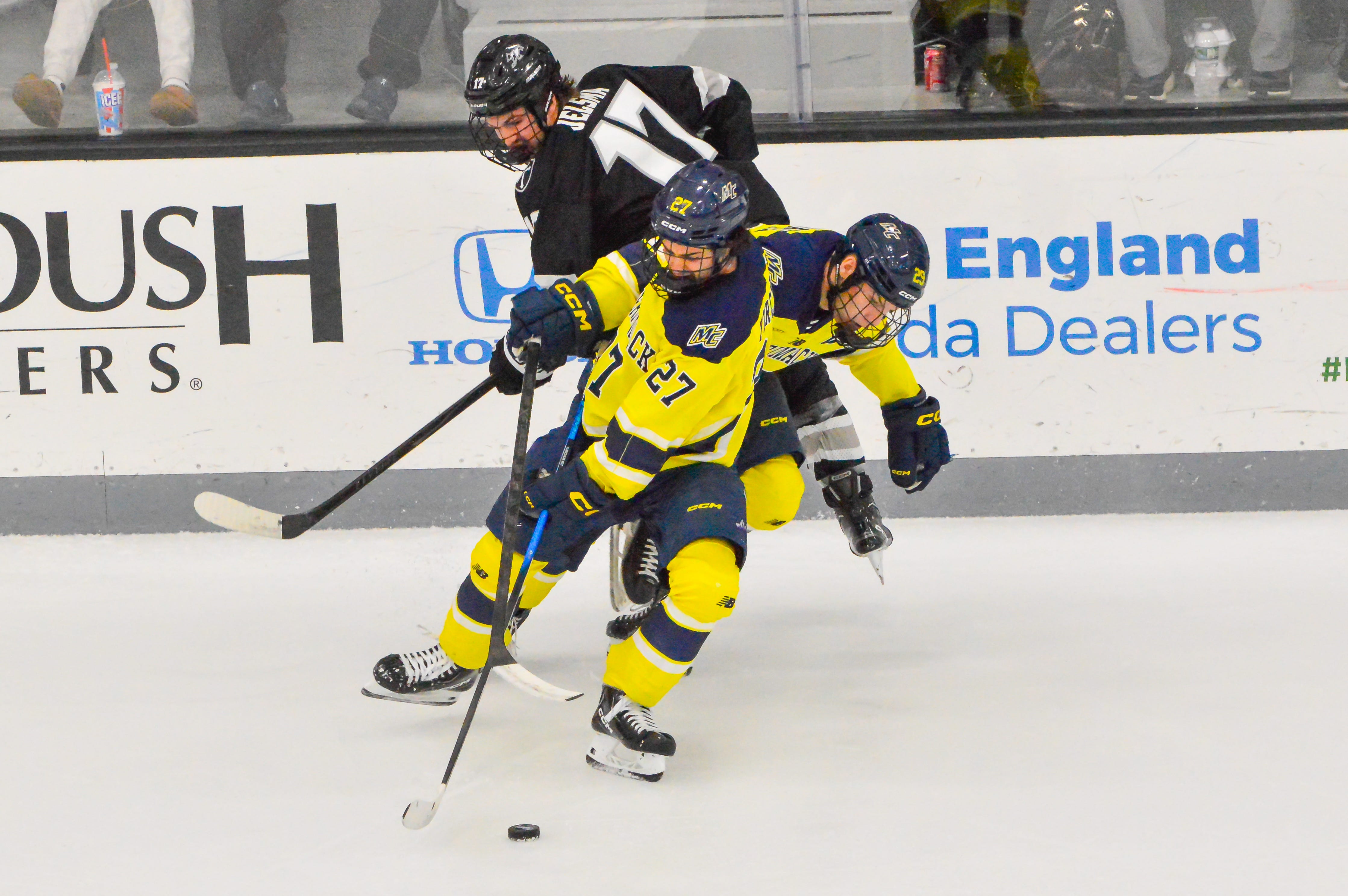 Merrimack’s offense came from Justin Gill and Nick Pierre, while Max Lundgren turned aside 33 shots. Gill (1 goal, 1 assist) and Trevor Hoskin (2 assists) posted multi-point efforts for the Warriors.