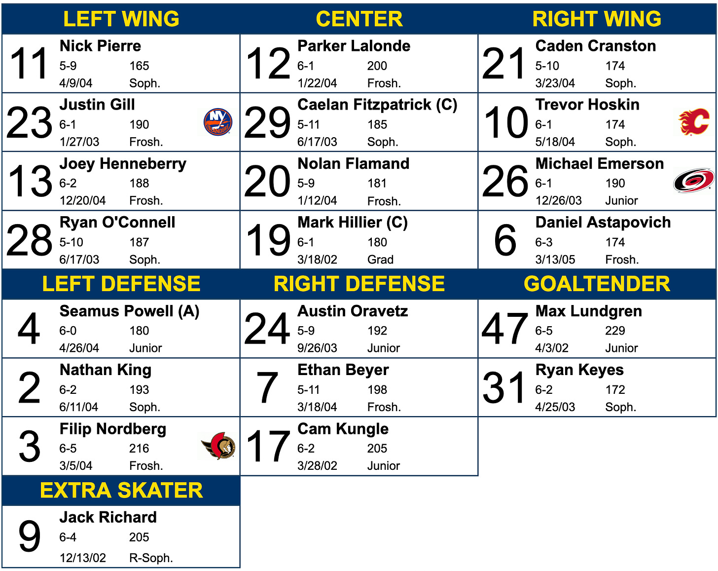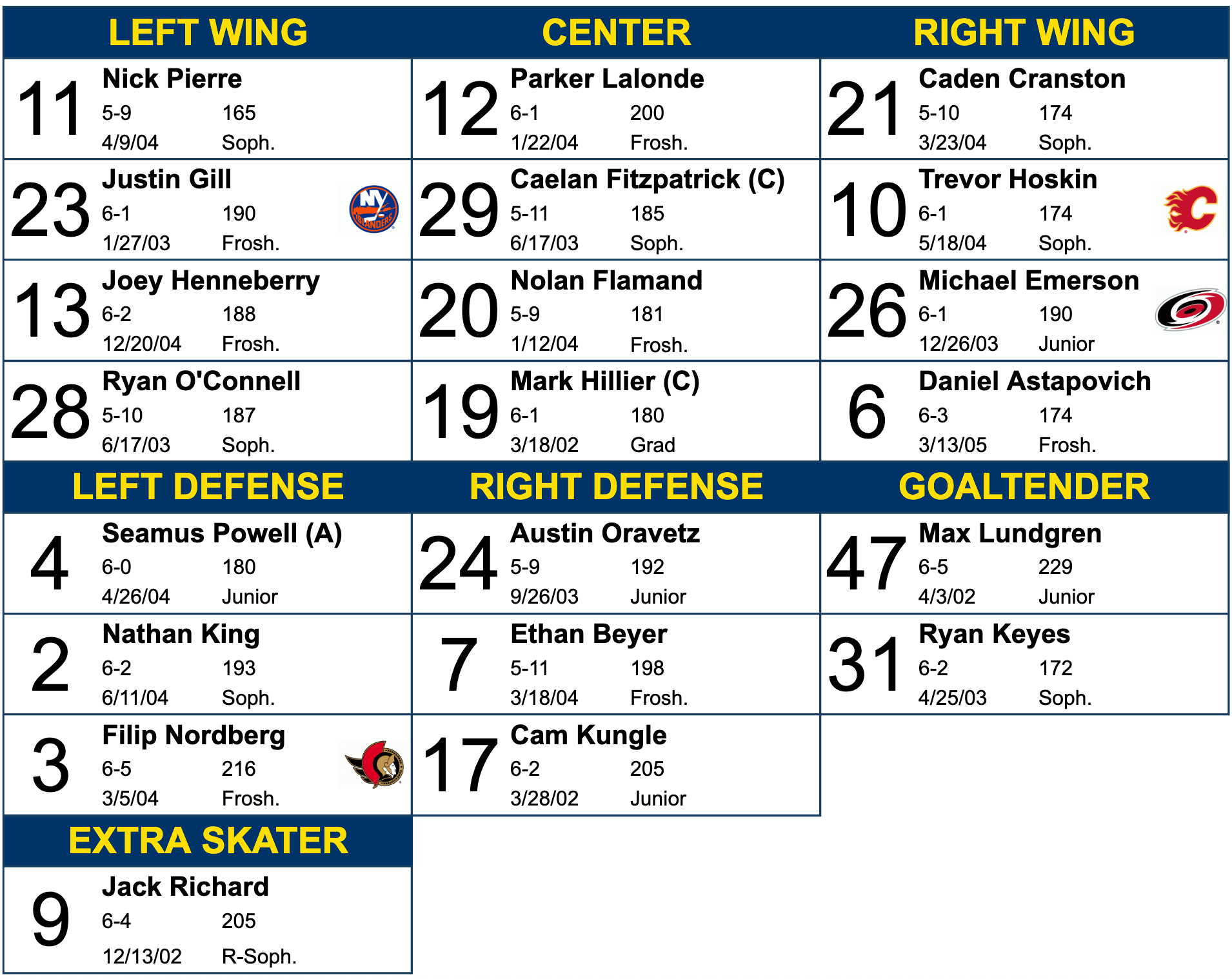 NORTH ANDOVER — Merrimack and Long Island complete a three-game series tonight at Lawler Arena. Ryan O’Connell and Jack Richard are back in the lineup for the Warriors.