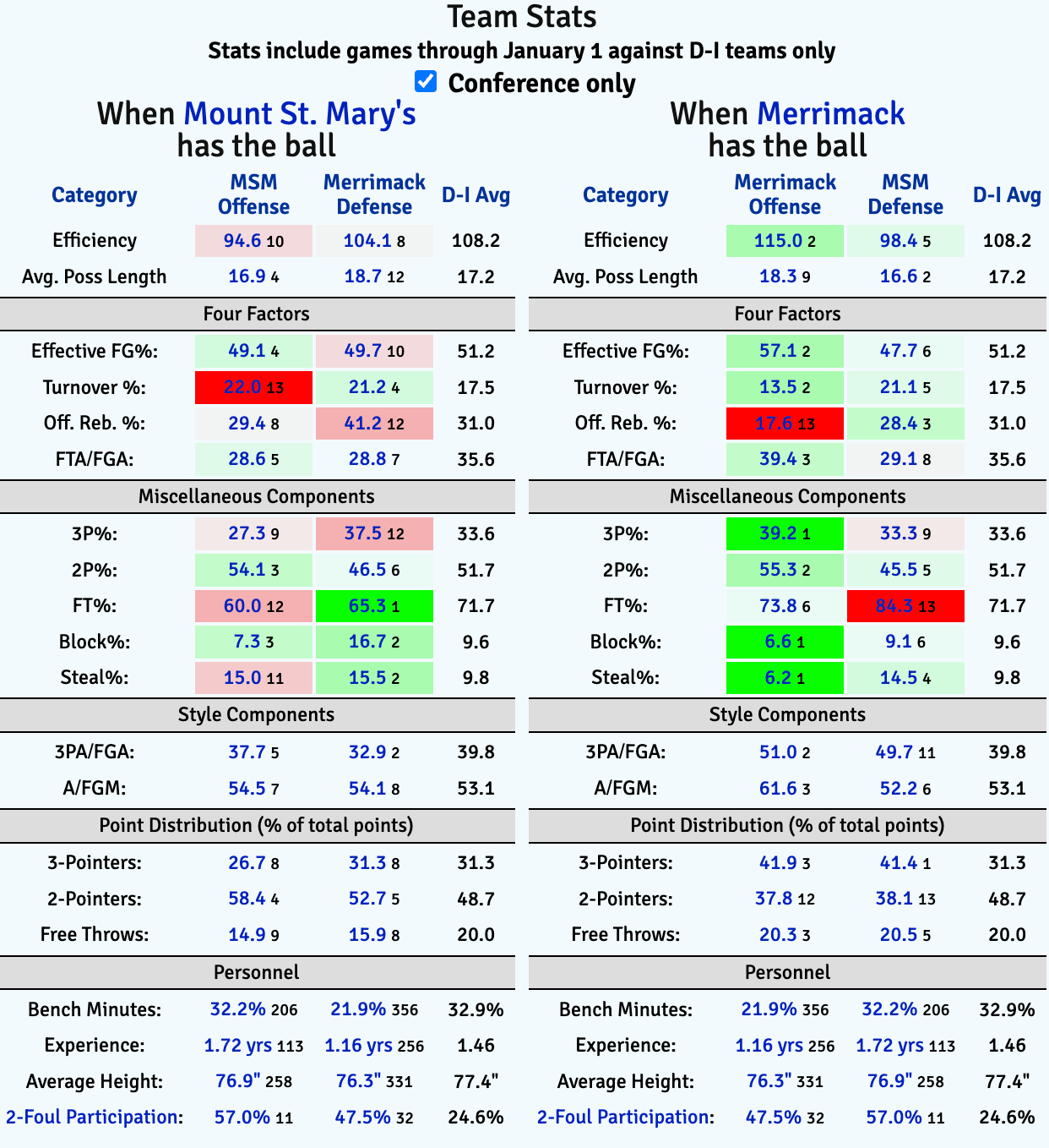 Merrimack and Mount St. Mary’s will meet Friday afternoon at Lawler Arena (3 p.m. tip) in a rematch of last season’s MAAC semifinal, the first time the programs have faced one another since that March meeting.