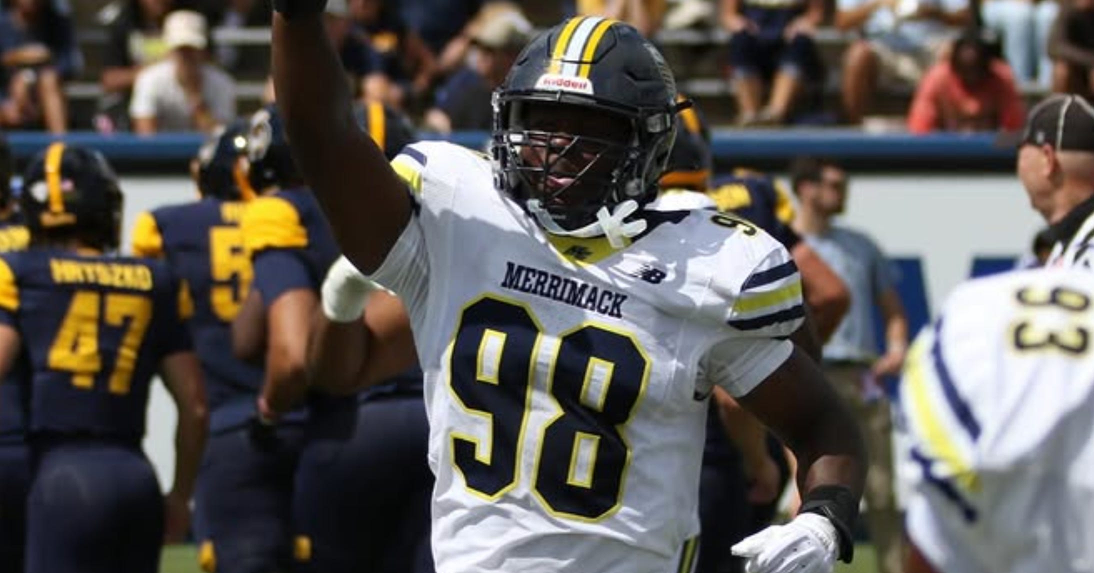 Much of the credit belongs to the Warriors’ defensive line. Merrimack enters the weekend ranked No. 7 in the FCS in rushing defense, No. 11 in defensive first downs, No. 3 in red-zone defense, and No. 9 in team sacks — a testament to its disruptive front.