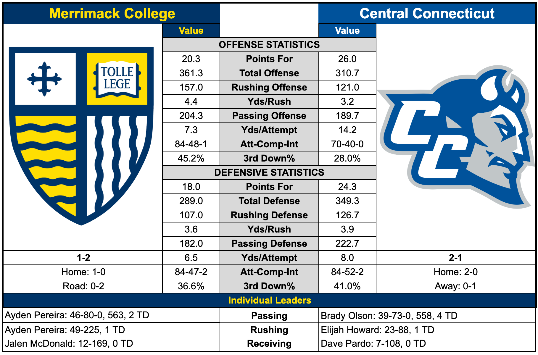 It’s been a busy week around the TMR offices, so this week’s preview will be a little shorter than usual (just some numbers). Still, there’s plenty to keep an eye on as the Warriors, sitting at 1-2, welcome Central Connecticut for a Saturday showdown.