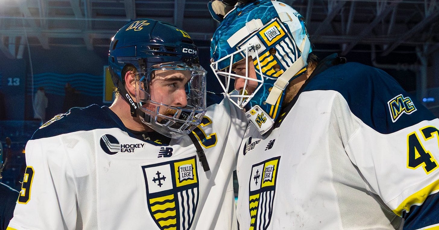 Hillier wasn’t the only one to hit a triple-digit milestone. Borek won his 100th game as Merrimack head coach on Thursday, becoming the fifth coach in program history to reach the mark.