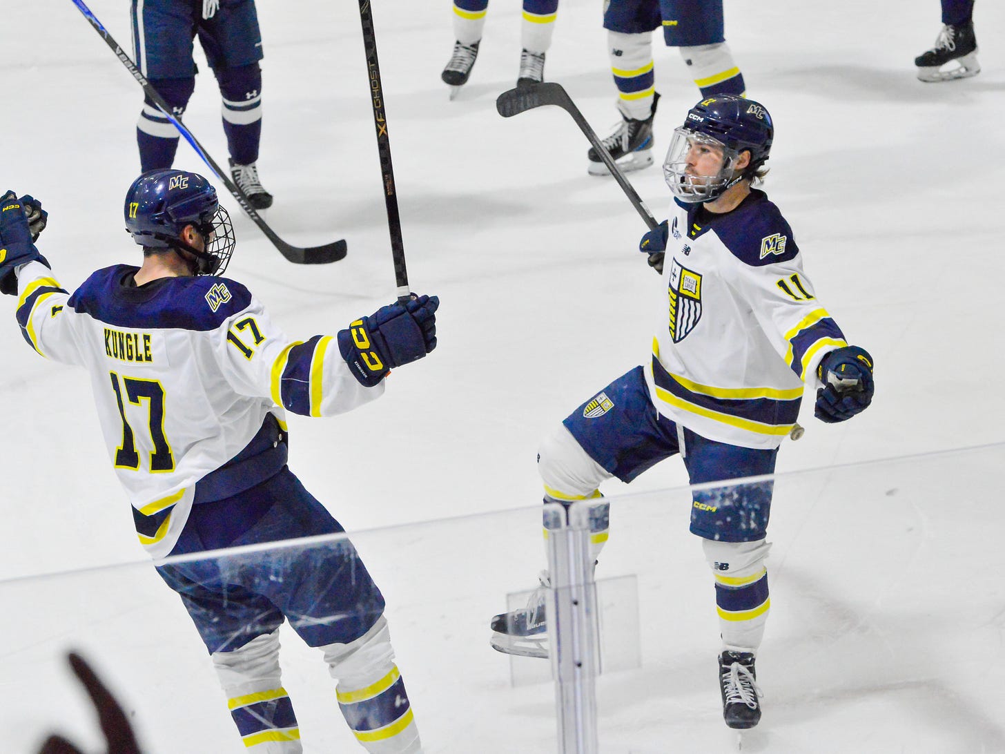 “It’s been rough here, and the third has been a struggle for us,” added graduate captain Mark Hillier. “There’s a lot of belief in our room. That’s the only thing that matters. I’ve just tried to keep that message to the group. Stick with it. A win like this is super important.”