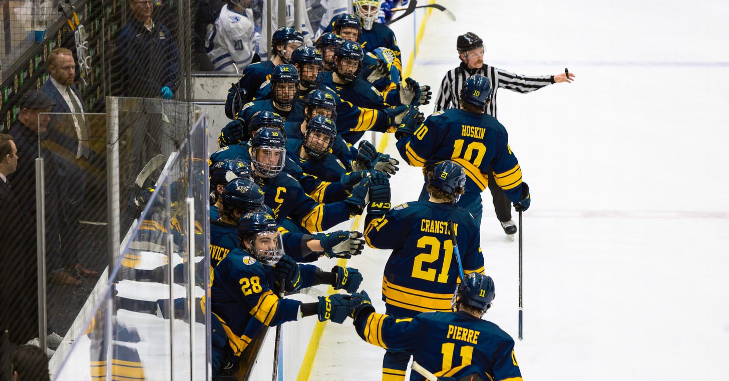 “A huge thing for us has been building continuity,” sophomore forward Trevor Hoskin said. “This is one of the closest rooms I’ve been a part of, and we’re all buying into what the coaches want us to do. We’ve built a really good routine every week. I’ve honestly never felt more comfortable going into games. The way we build up throughout the week and the way the coaches have us prepared. So we enter the weekend of games really confident because of how well prepared we are, and we’re just trying to ride that.”