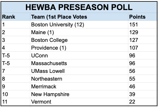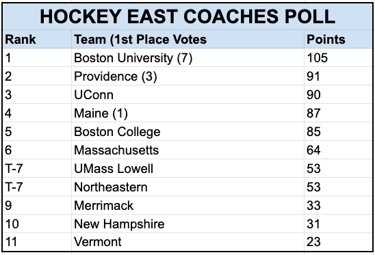 And, finally, here’s how I have Hockey East stacked entering the season — with my national ranking for each team included as well: