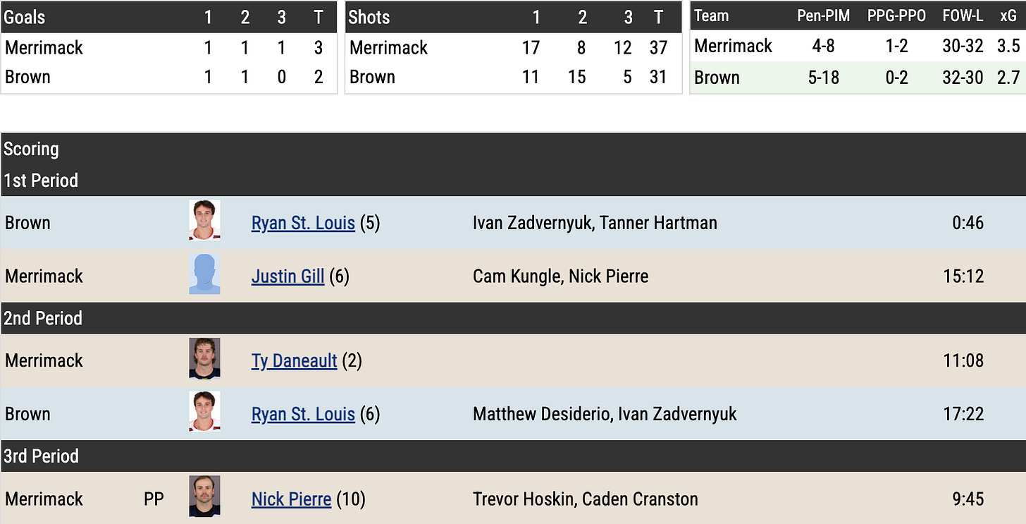 Merrimack found itself chasing the game just 46 seconds in, surrendering a rebound goal to Ryan St. Louis, but the response was measured and composed. Justin Gill, back in the lineup after missing Monday’s game with an injury, tied it late in the first period.